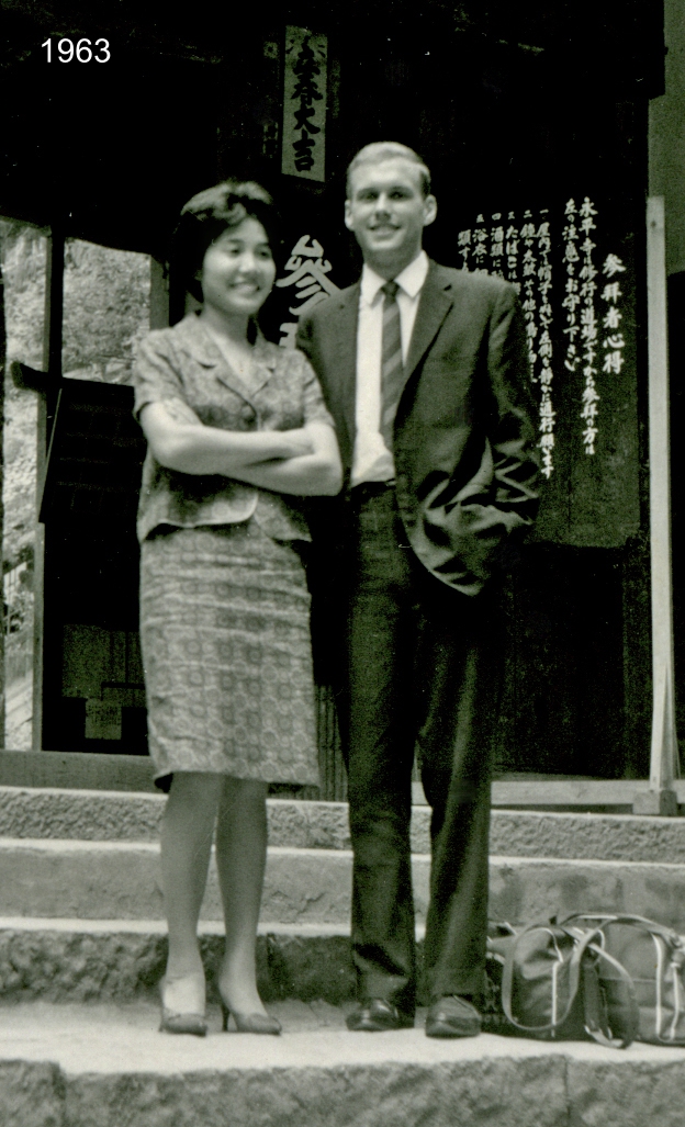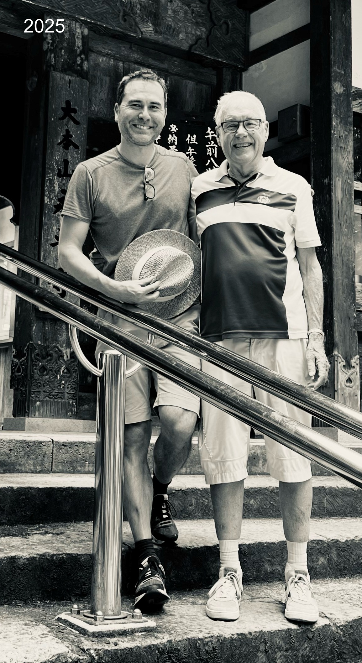 Byron first went to Japan in 1963 to meet Sakiko’s family. The venue was the famous Eiheiji Temple near Fukui. Sixty-two years later, he and Barry spent 36 hours there and had a photo taken on the same steps.