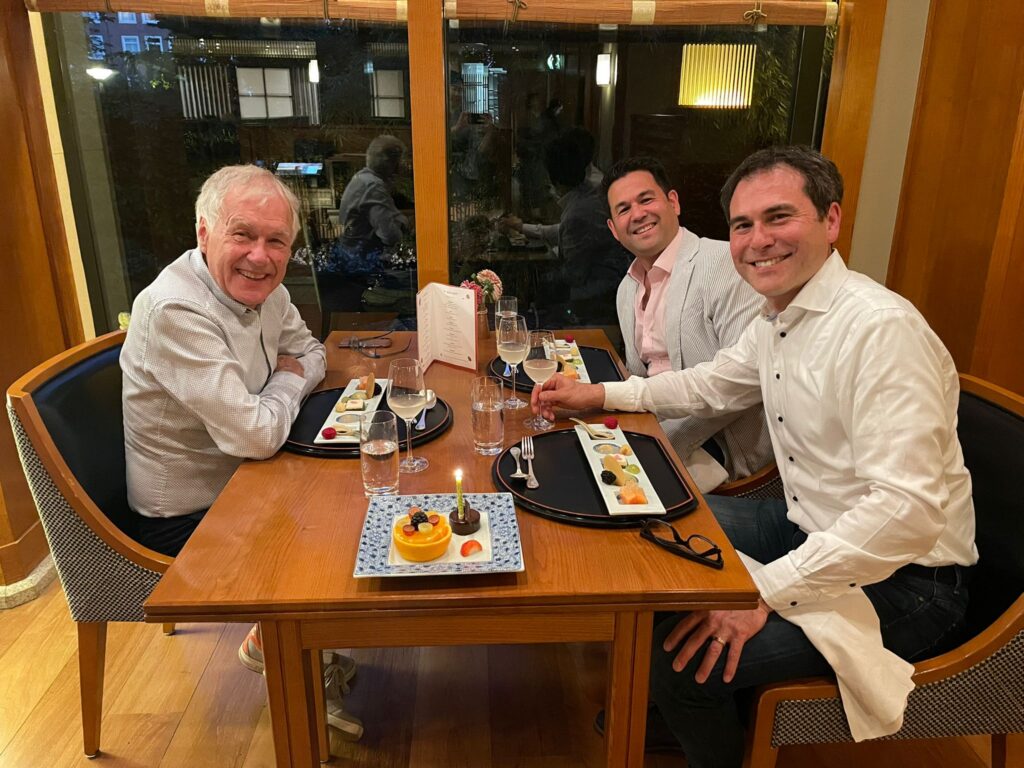 In 2018, Byron did the organizing. The destination was KRAKOW (including Auschwitz), but we didn’t take any pictures. 2019, 2020, and 2021 were misses because of COVID. In 2022, Dennis took us to the CHAMPAGNE area of France. And in 2024, Barry again, this time close to home for an unbelievable Japanese dinner in AMSTERDAM to celebrate his 50th birthday.