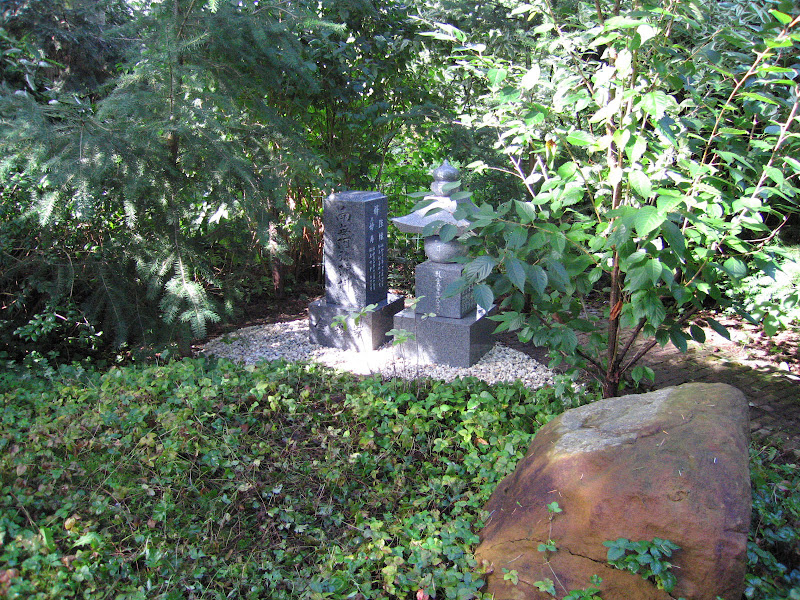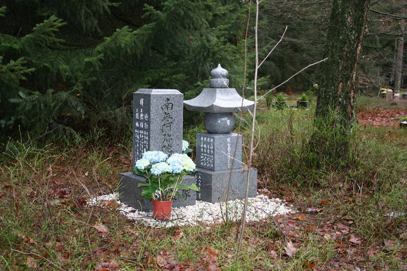 The dark urn contains ashes from the smaller grave and the light one contains ashes from the larger grave.In August 2005, the stones arrived from Mikuni.We found a good place at the end of the path, on the left side.Toyoko-san was sure that the ancestors were “very surprised” to be in Bennekom (and we hoped “happy” too).